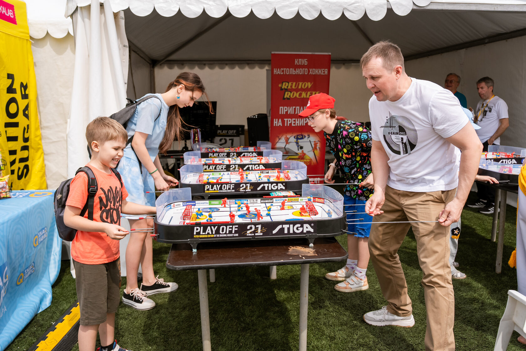 Приглашаем всех посетителей Семейного фестиваля «Спортлэнд» проверить свои силы. Принять участиесмогут абсолютно все: дети и взрослые, новички и опытные игроки. Турнир открыт для каждого. Правила просты, но чтобы побеждать, нужна сноровка: быстро вращать ручки, точно передавать шайбу и забивать голы. Участников ждут честные матчи, возможность проявить скорость реакции, стратегическое мышление и ловкость на пути к званию лучшего игрока. Победителей наградят медалями и памятными призами от РФНХ.