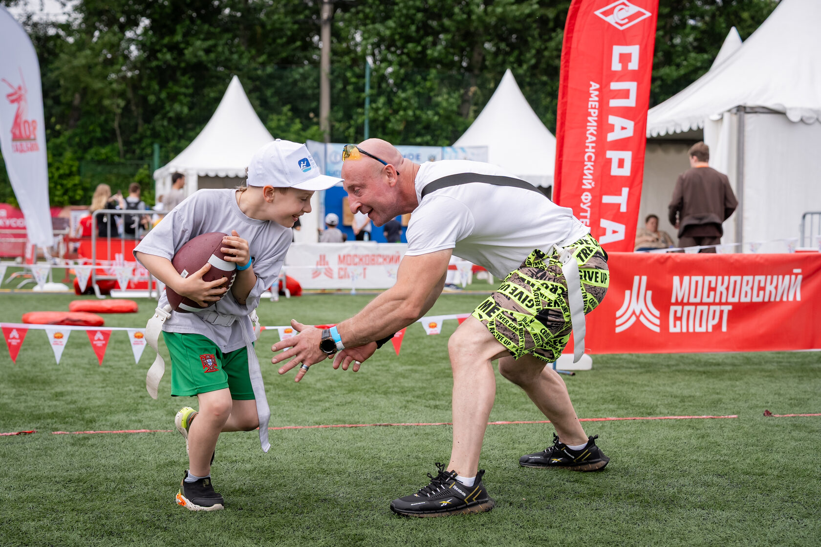 Гости смогут познакомиться с американским футболом и новым олимпийским видом спорта – флаг-футболом, принять участие в играх и весело провести время всей семьёй!
